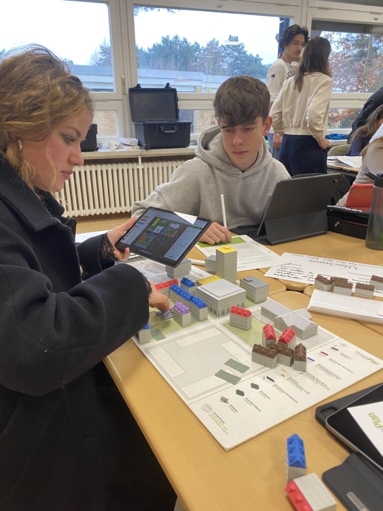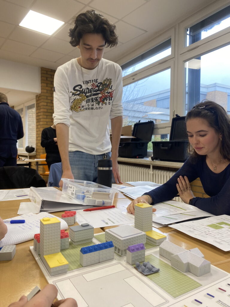 Der Geographie-Leistungskurs des Jahrgangs 11 von Fr. Hafke hat am 20.11.2025 an einem komplexen Planspiel zur Stadtentwicklung, organisiert von UrbanPlan, teilgenommen. Unser Ziel war es, die vielschichtigen Herausforderungen und Interessenkonflikte, die beim Bauen in der Stadt alltäglich sind, selbst zu managen und zu lösen. Der Kern der Aufgabe war es, Häuser für verschiedene Bevölkerungsgruppen zu planen. Wir mussten dabei unter anderem auf die Bauweise achten, genug Wohnraum für alle schaffen und gleichzeitig auf wichtige soziale Aspekte wie ausreichend Grünflächen und Freizeitangebote achten.