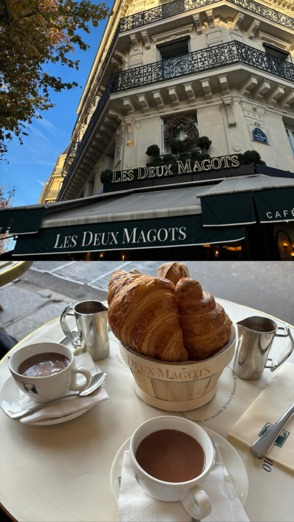 Der Freitag begann mit einem typisch französischen Frühstück – Croissant mit Chocolat Chaud – im Café des deux Magots im Quartier Saint-German-des-Prés.