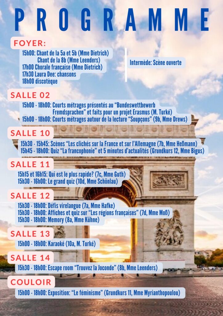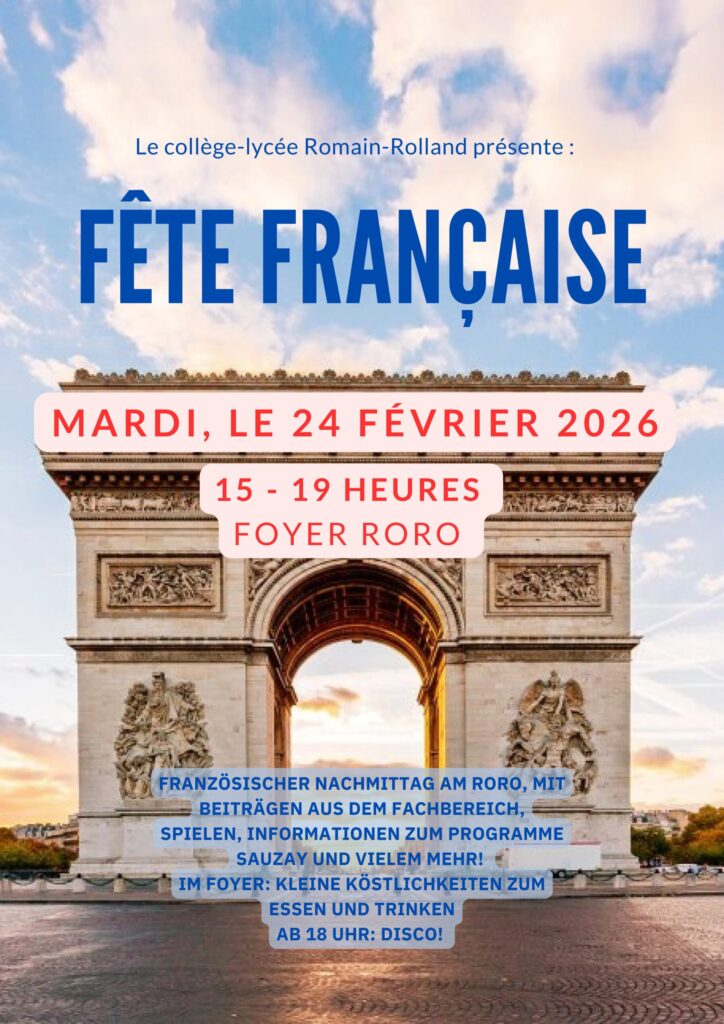 am Dienstag, dem 24. Februar, zwischen 15 und 19 Uhr, möchten wir mit euch das Fach Französisch im Rahmen unserer traditionellen „Fête française“ feiern.