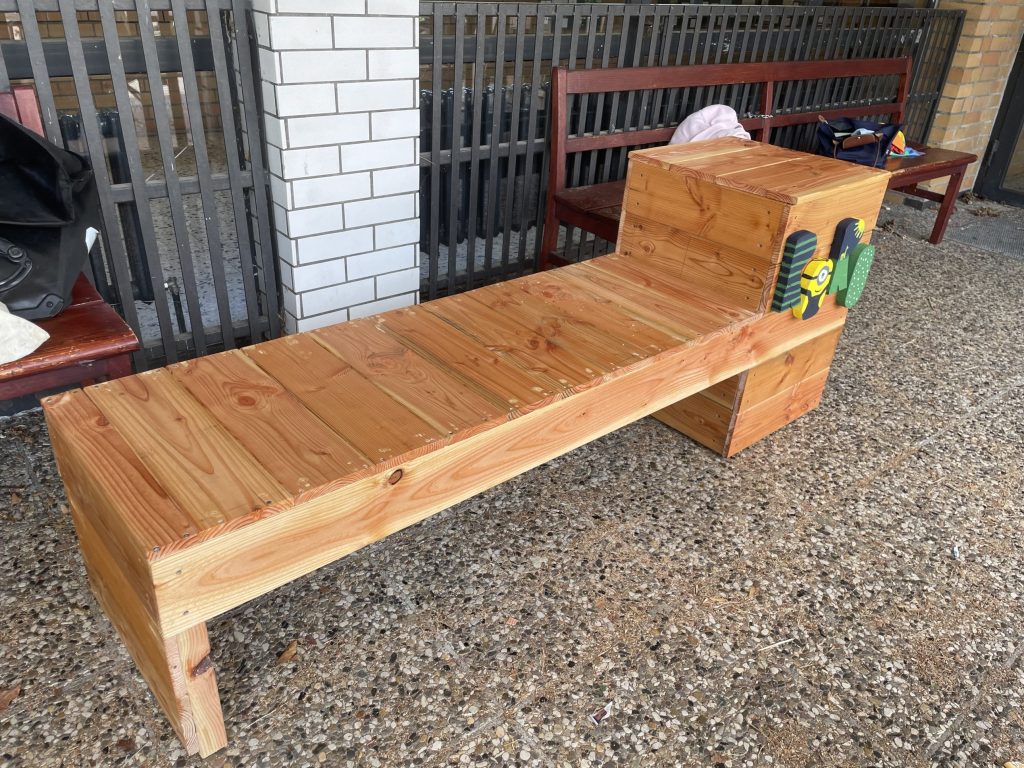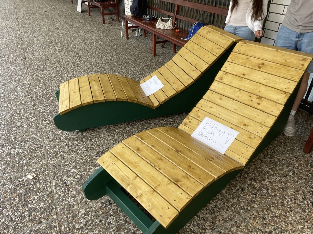 - Schulhofmöbel aus Holz entstanden in Teamarbeit.