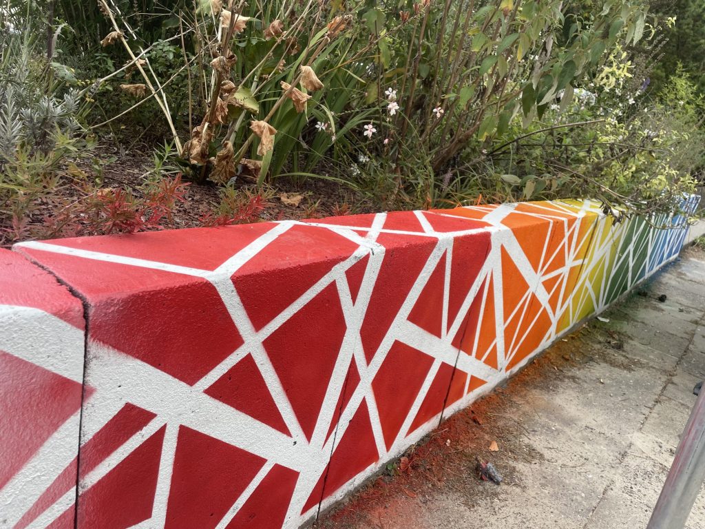 - Eine Mauer auf dem Schulhof wurde künstlerisch gestaltet – das Ergebnis ist diese Woche fertig geworden und ein echter Hingucker!