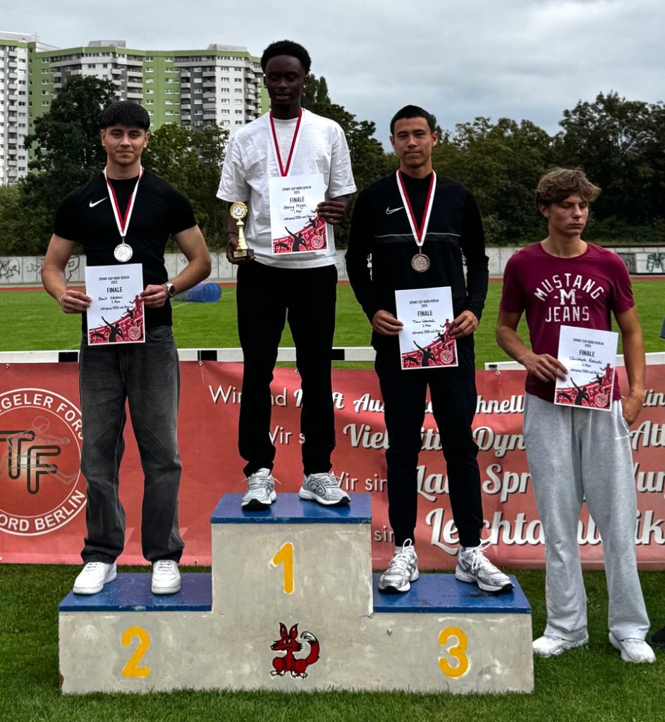 Seit einigen Jahren zieht es die Reinickendorfer Schulen im September ins Stadion in die Finsterwalder Straße, um beim Sprint Cup Finale herauszufinden, wer die schnellsten Läufer*innen in ihren jeweiligen Jahrgängen sind. Das RoRo ging mit einigen Schüler*innen an den Start, die ihre tollen Leistungen bei der Qualifikation erneut zeigen oder sogar verbessern konnten, sodass fast alle die Top 8 erreichten und somit in den Finalläufen über 50m starteten. Bei den sehr spannenden Finals reichte es zwar leider für keinen unserer Schüler*innen zum Sieg, aber wir konnten uns einige Top 3 Platzierungen sichern. Dank vieler dieser Platzierungen wurde es bei der Gesamtwertung der zweite Platz hinter dem Humboldt Gymnasium.